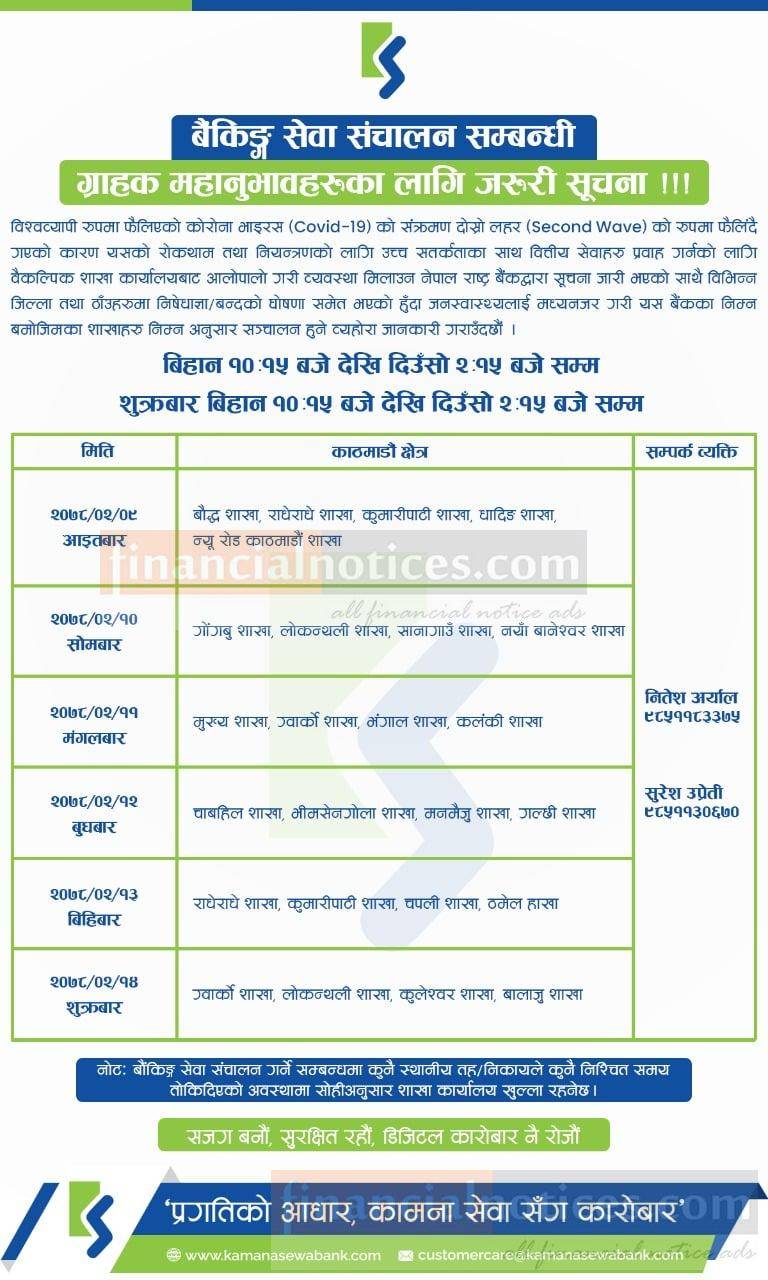 Published by Kamana Sewa Bikas Bank Official Page on 2078-2-09
