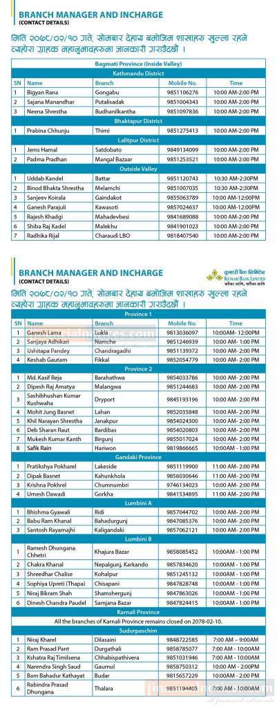 कुमारी बैंकको शाखाहरु खुल्ला रहने बारेको सूचना (Province 1-7)