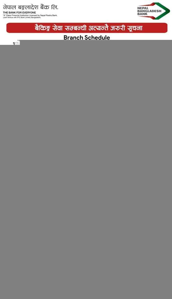 Notice for inside valley branch opening schedule for Jestha 11, 2078.