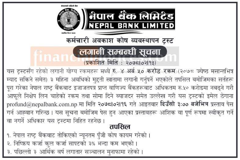 नेपाल बैंकको लगानी सम्बन्धी महत्वपूर्ण सूचना