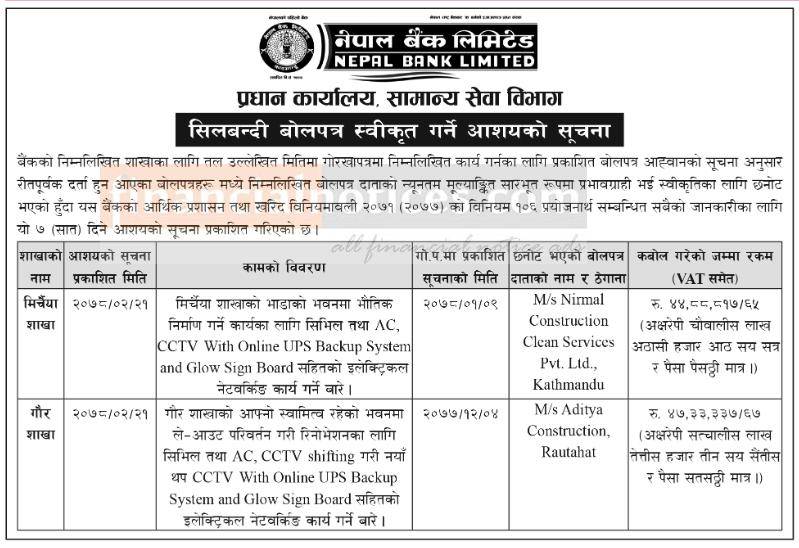 Published by Nepal Bank Limited Official Page on 2078-2-21