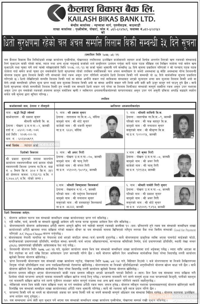 Kumari Bank Auction Notice for Non-Banking Assets at Mahendranagar, Kanchanpur -