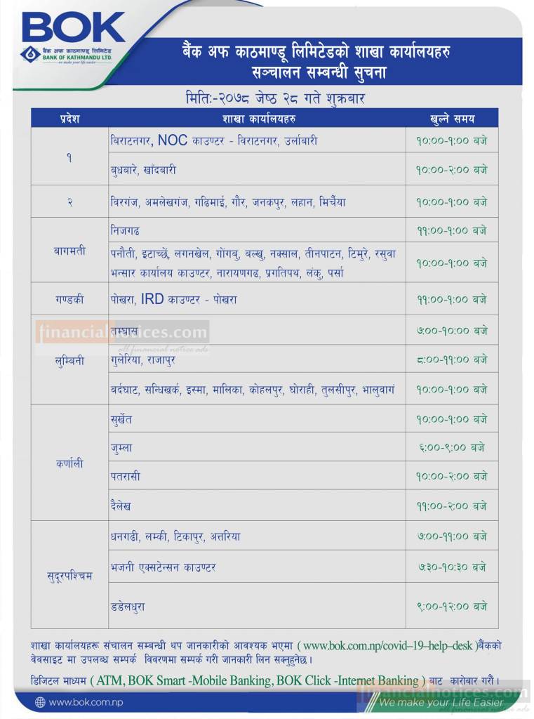 बैंक अफ काठमाण्डू लिमिटेडको शाखा कार्यालयहरू संचालन सम्बन्धी सूचना !!