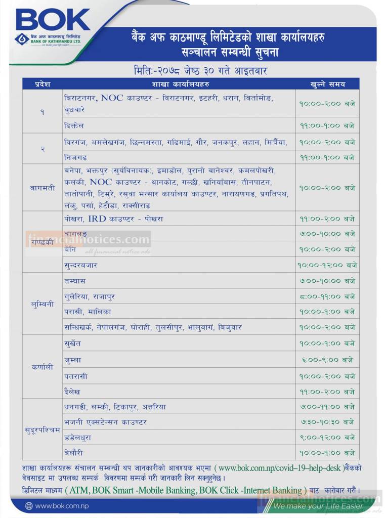 BOK का शाखाहरु खुल्ला रहने सूचना