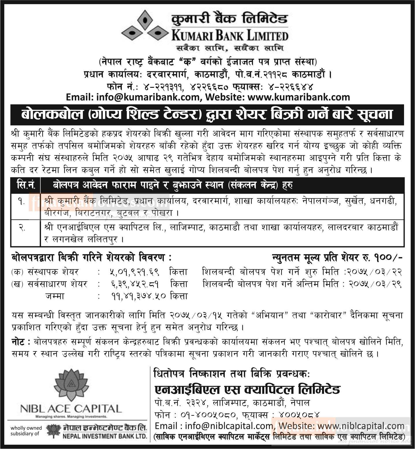 बोलकबोल गोप्य सिल्ड टेण्डर द्धारा शेयर विक्रिको सूचना