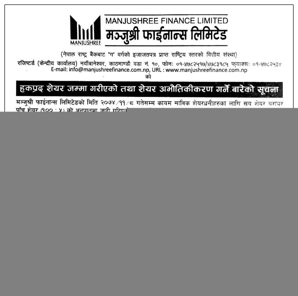हकप्रद शेयर जम्मा गरिएको सूचना