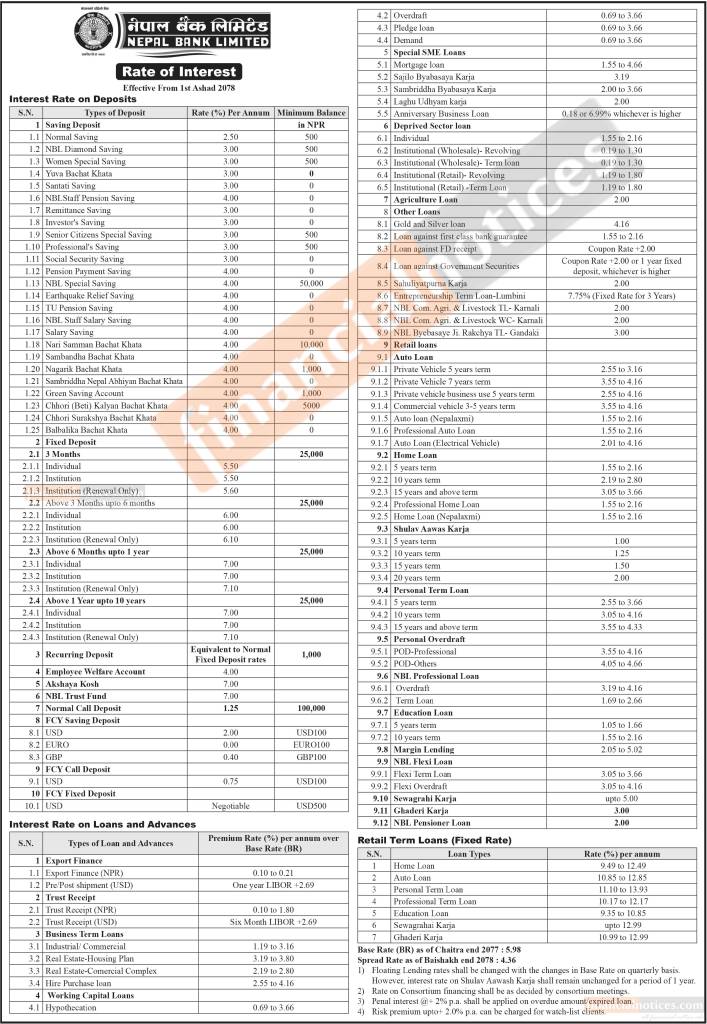 नेपाल बैंकको नयाँ ब्याजदर परिवर्तन भएको सूचना