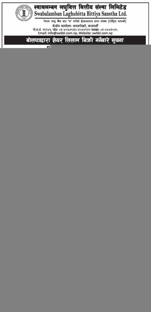 स्वावलम्बन लघुवित्तको स्वामीत्वमा रहेका १,८९,६५३ कित्ता संस्थापक समूहको शेयर लिलामी विक्रीमा