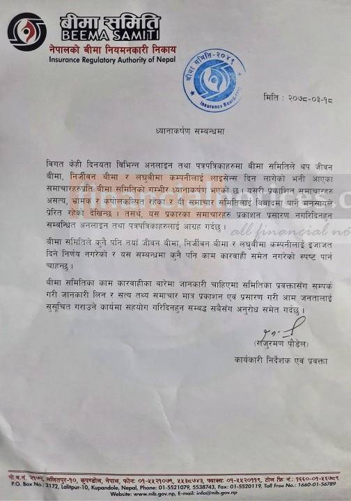 Published by Beema Pradhikaran Official Page on 2078-3-18