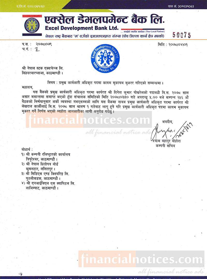 Published by Excel Dev. Bank official Page on 2078-4-01