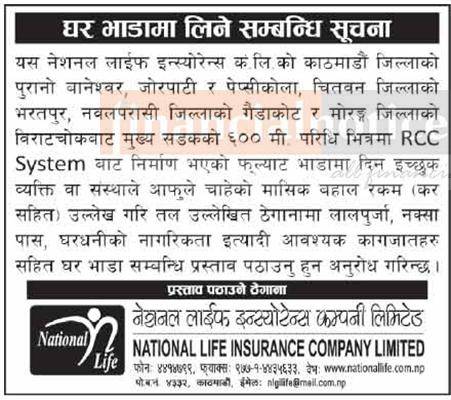 इस्योरेन्स कम्पनीको लागि घर भाडामा लिनेबारे सूचना