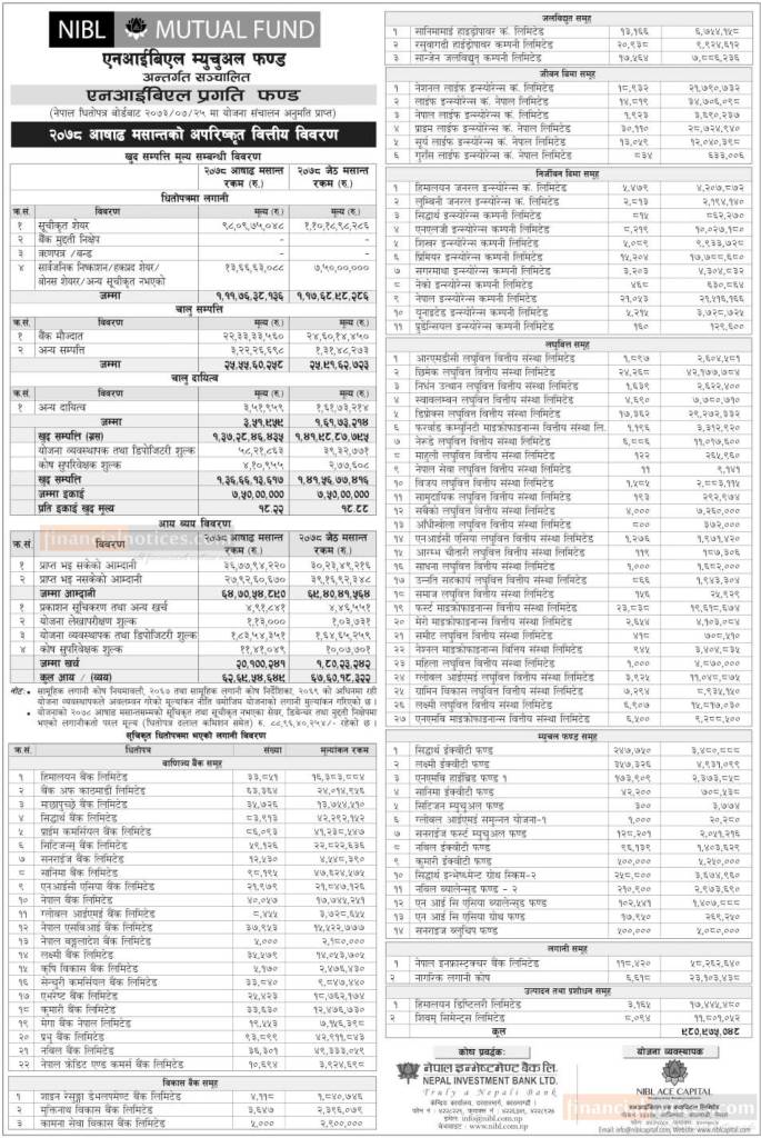 NIBL Ace Capital has published “NIBL Pragati Fund” NAV till Ashar, 2078.