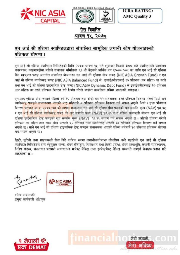 एनआईसी एशिया लघुवित्तले यो वर्ष लाभांश नदिने सम्बन्धी सूचना
