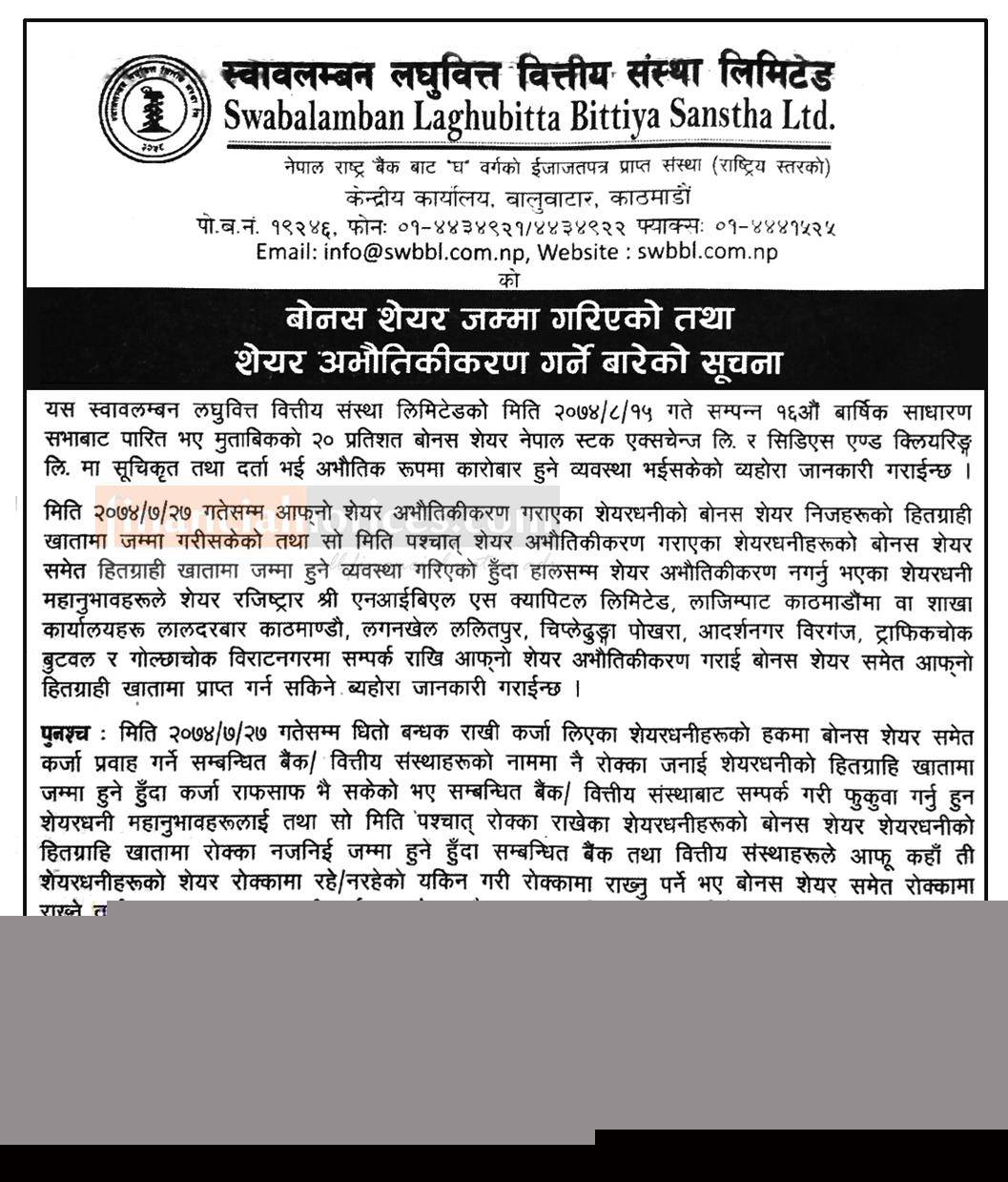 बोनस शेयर जम्मा गरिएको सुचना !!!