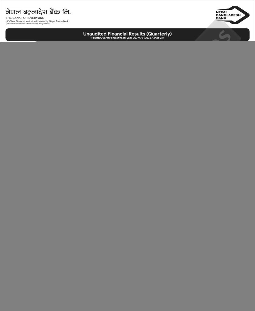 नेपाल बङ्गलादेश बैंकको खुद नाफा २ अर्व २९ करोड २५ लाख रुपैयाँ - Q4 Report -