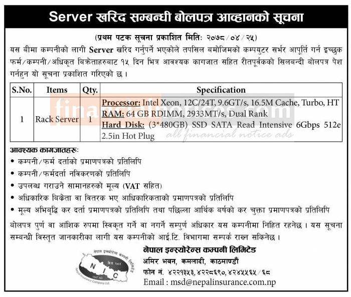 Server खरिद सम्बन्धी बोलपत्र आव्हानको सूचना