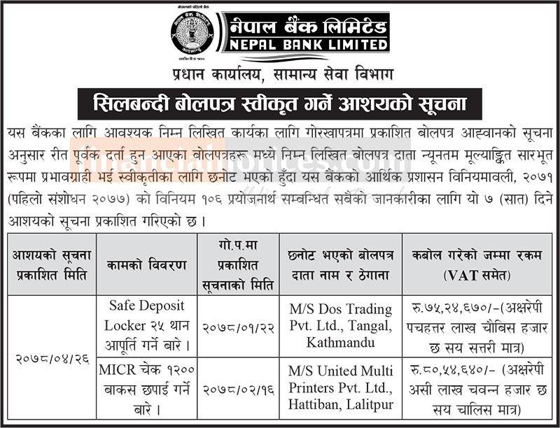 Published by Nepal Bank Limited Gorkha Patra on 2078-4-26