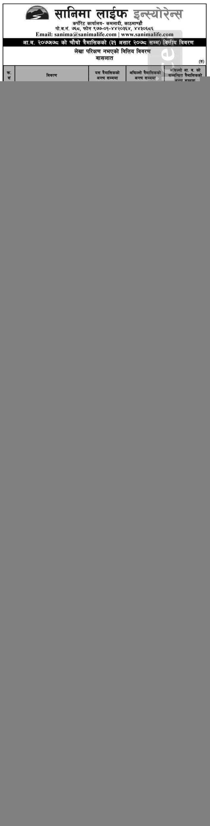 Sanima Life Insurance has posted a net profit of Rs 102.77 million during the 4th quarter.
