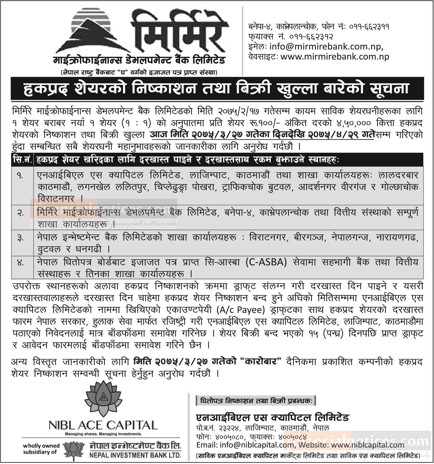 हकप्रद शेयरको निस्कासन तथा बिक्री खुल्ला