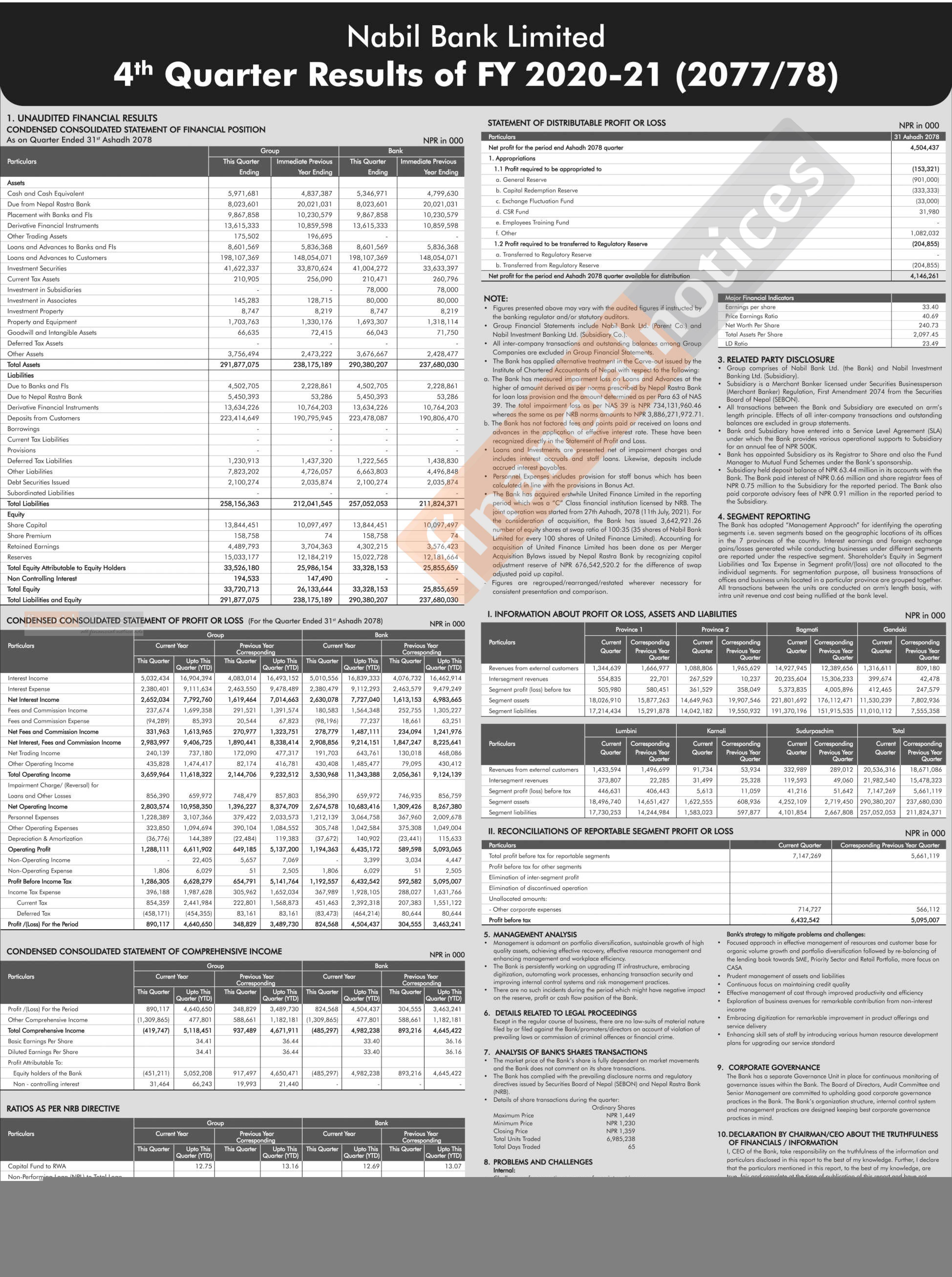 नबिल बैंकको खुद नाफा ४ अर्ब ५० करोड ४४ लाख रुपैयाँ - Q4 Report -