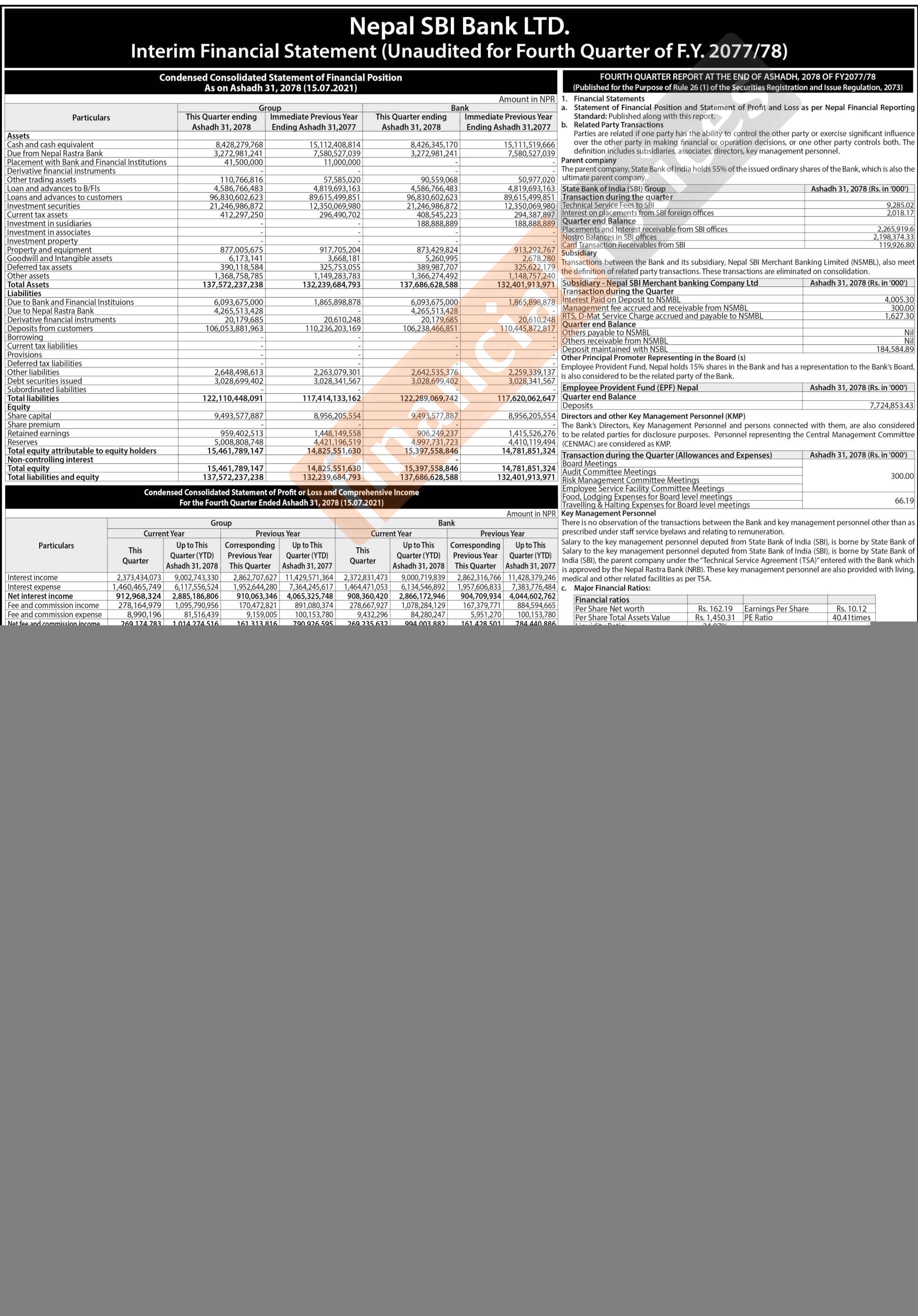 नेपाल एसबिआई बैंकको खुद नाफा ९६ करोड ९ लाख रुपैयाँ - Q4 -