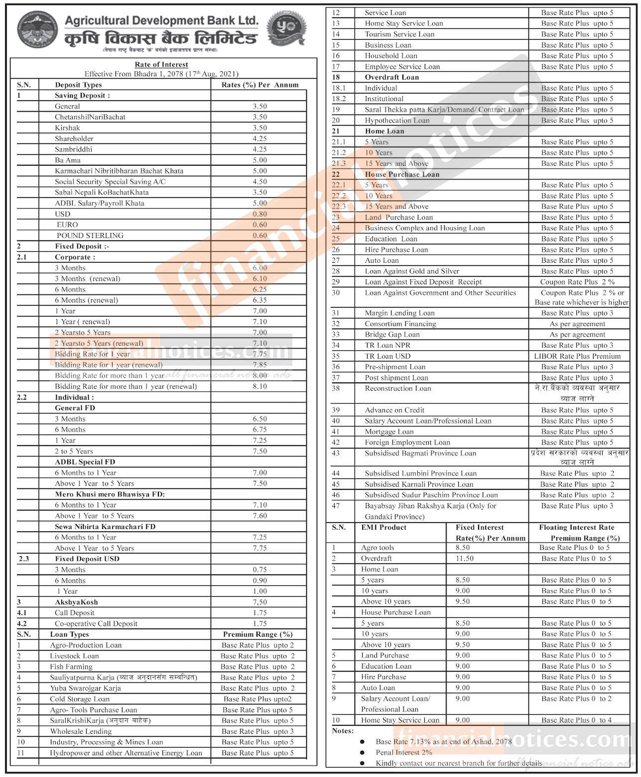 कृषि विकास बैंकको नयाँ व्याजदर सार्वजनिक - Interest Rates -