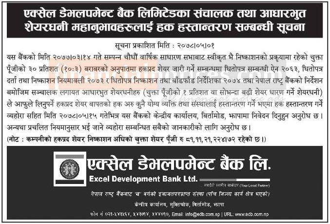 Published by Excel Dev. Bank on 2078-5-01