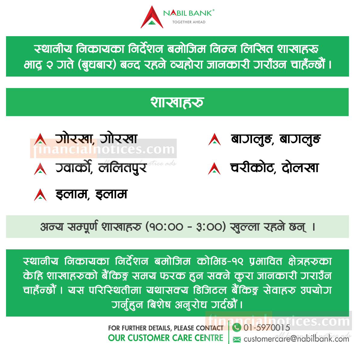 शाखा कार्यालयहरु बन्द रहने बारे सूचना