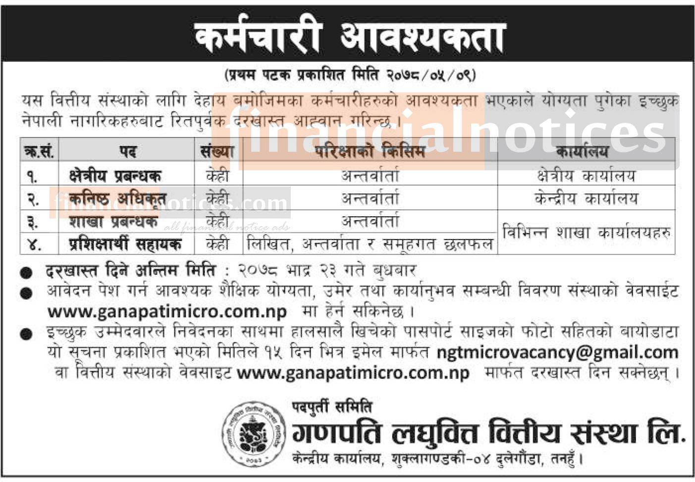 लघुवित्तमा कर्मचारी आवश्यकता - Job Vacancy -