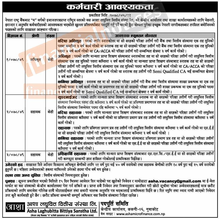 लघुवित्तमा कर्मचारी आवश्यकता - Job Vacancy -