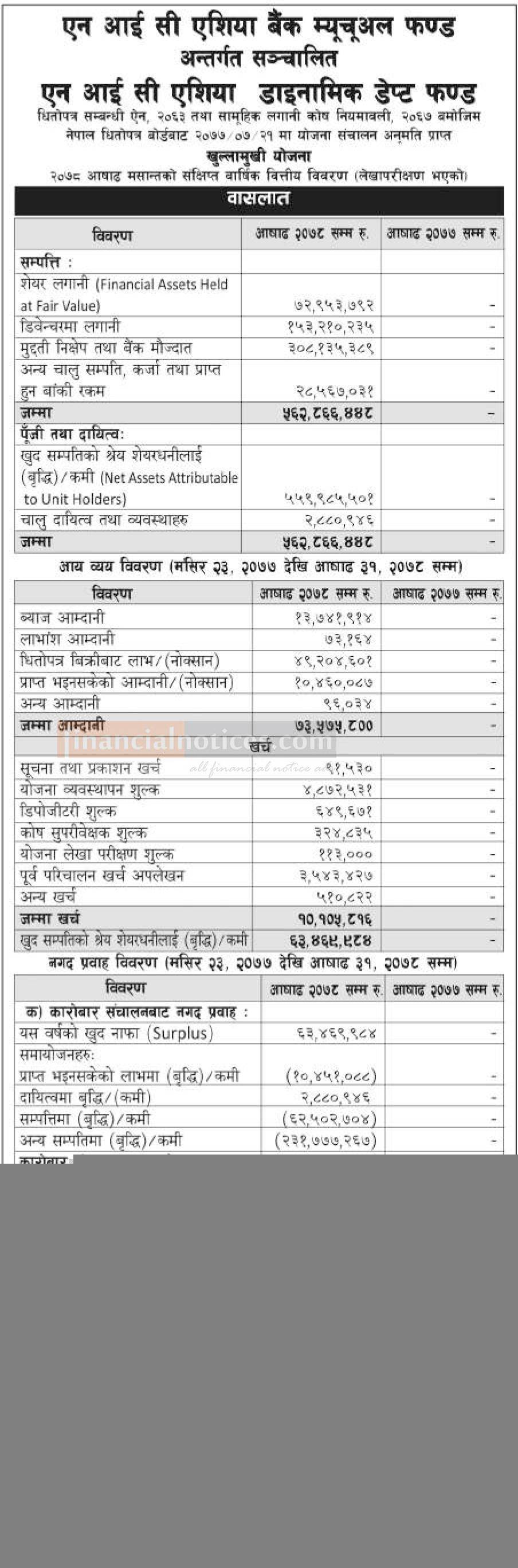 NIC Asia Capital has published NIC Asia Dynamic Debt Fund NAV till Sharwan, 2078.