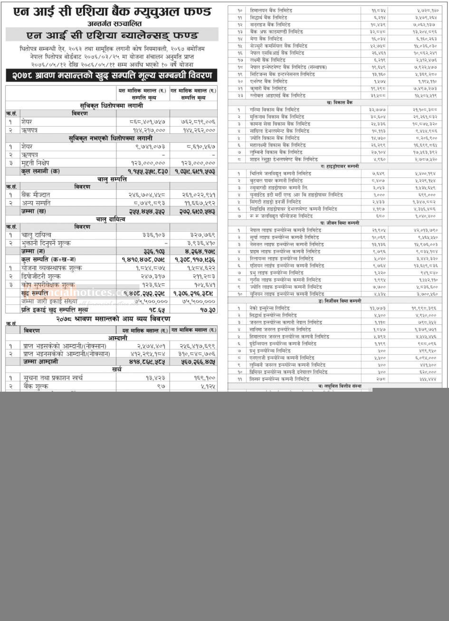 NIC Asia Capital has published NIC Asia Balanced Fund NAV till Sharwan, 2078.