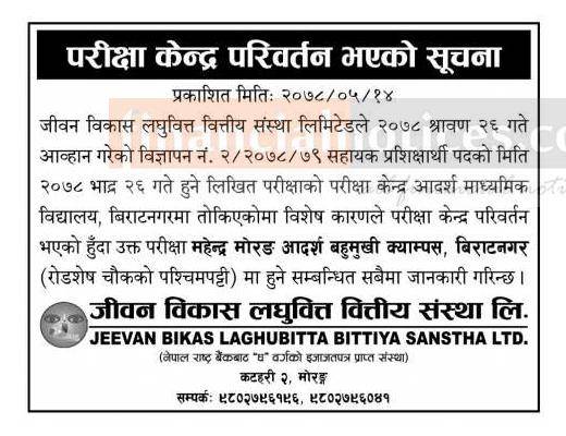 परीक्षा केन्द्र परिवर्तन भएको सूचना