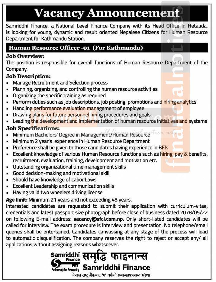 Job Vacancy - रोजगारीको अवसर -