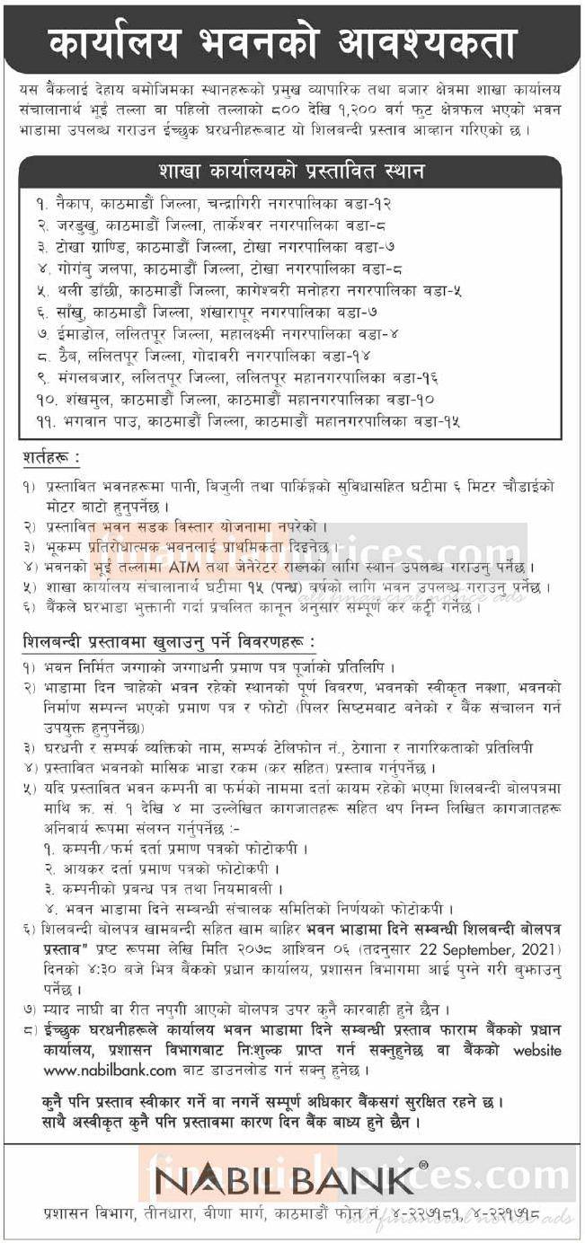 कार्यालय भवनको आवश्यकता सम्बन्धी सूचना