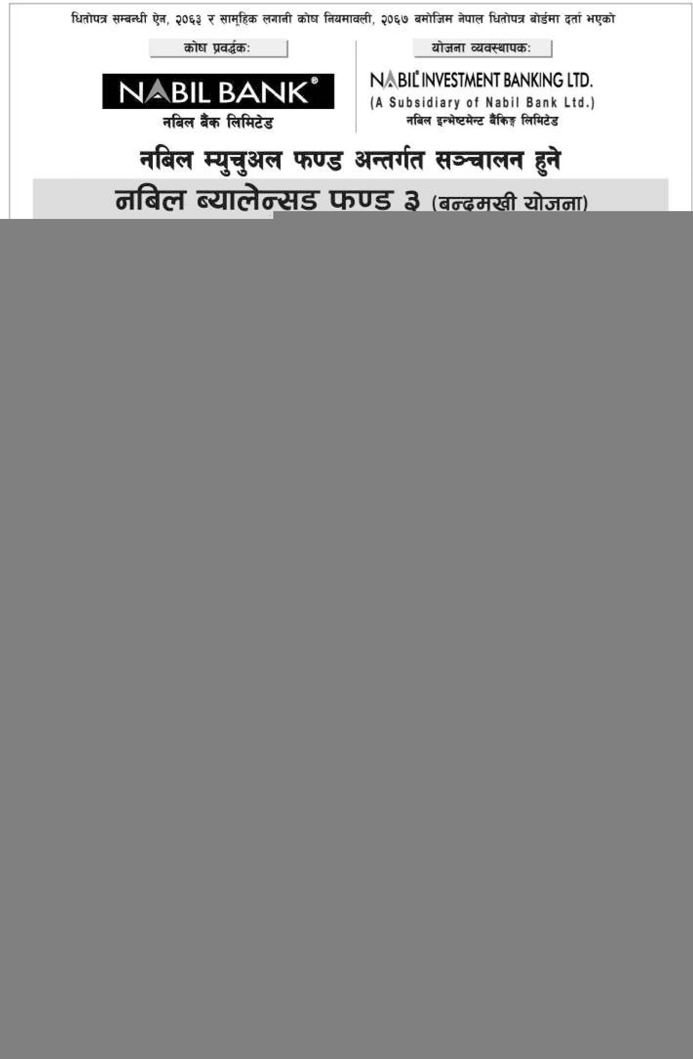 नबिल ब्यालेन्सड् फण्ड ३ को इकाई सार्वजनिक निष्काशन तथा बिक्री खुल्ला बारेको सूचना