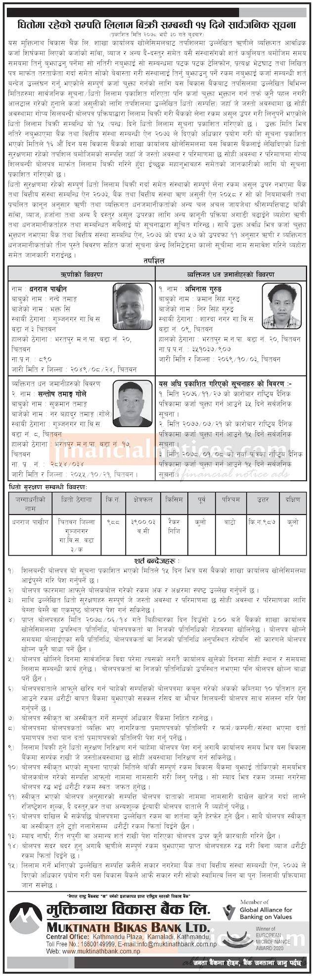 Kumari Bank Auction Notice for Non-Banking Assets at Mahendranagar, Kanchanpur -