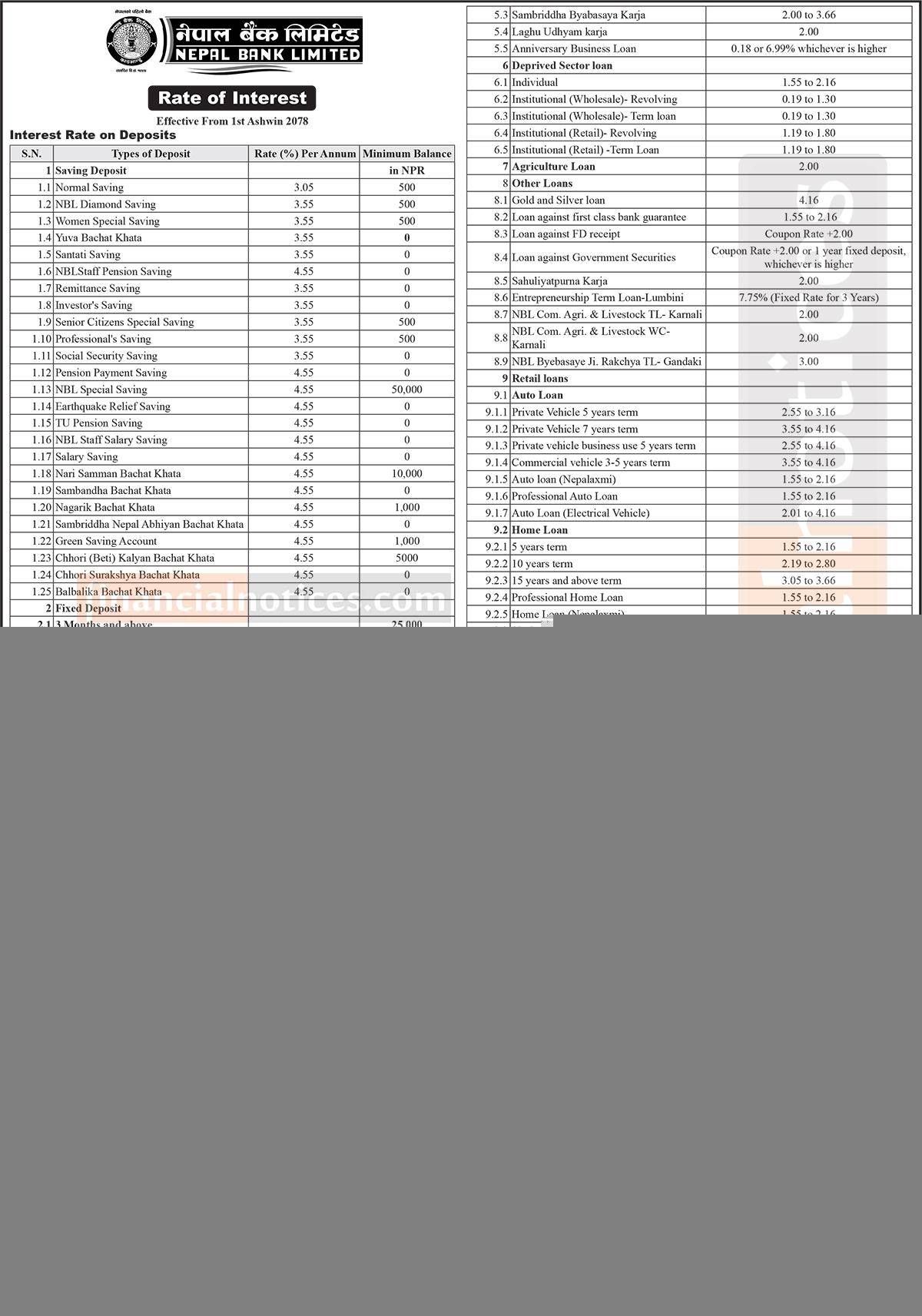 नेपाल बैंकको ब्याजदर परिवर्तन सम्बन्धी सूचना