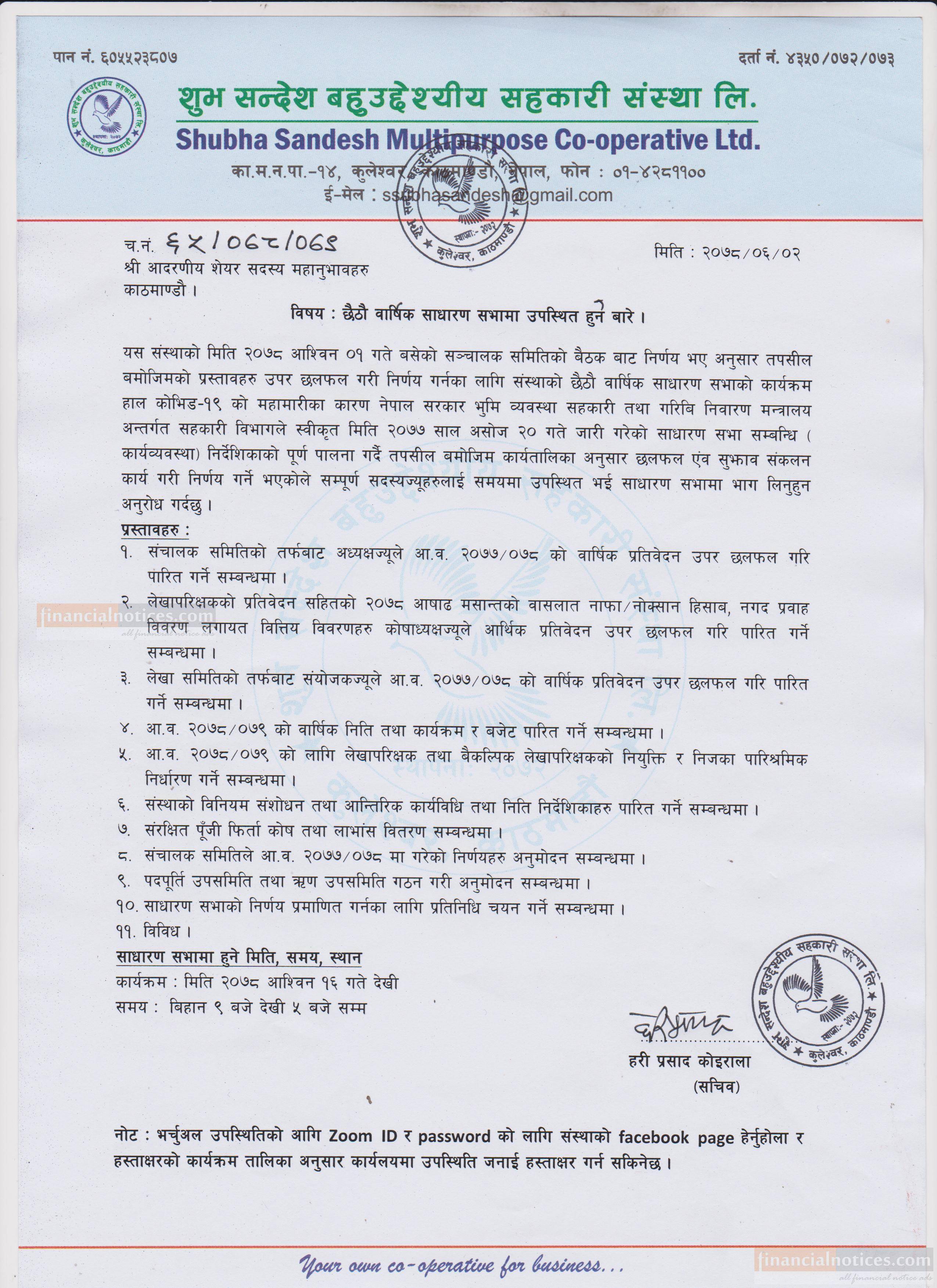 Published by Shubha Sandesh SACCOS Official notice on 2078-6-03