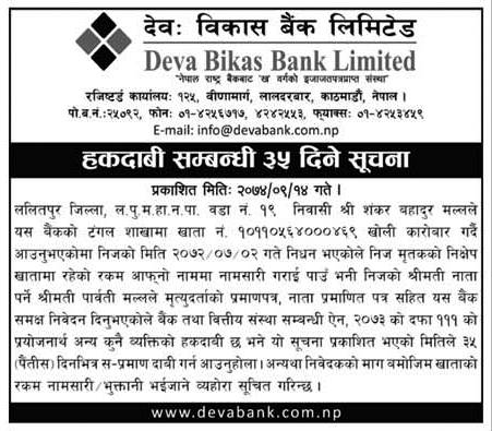 Published by Deva Bikas Bank Annapurna Post on 2074-9-14