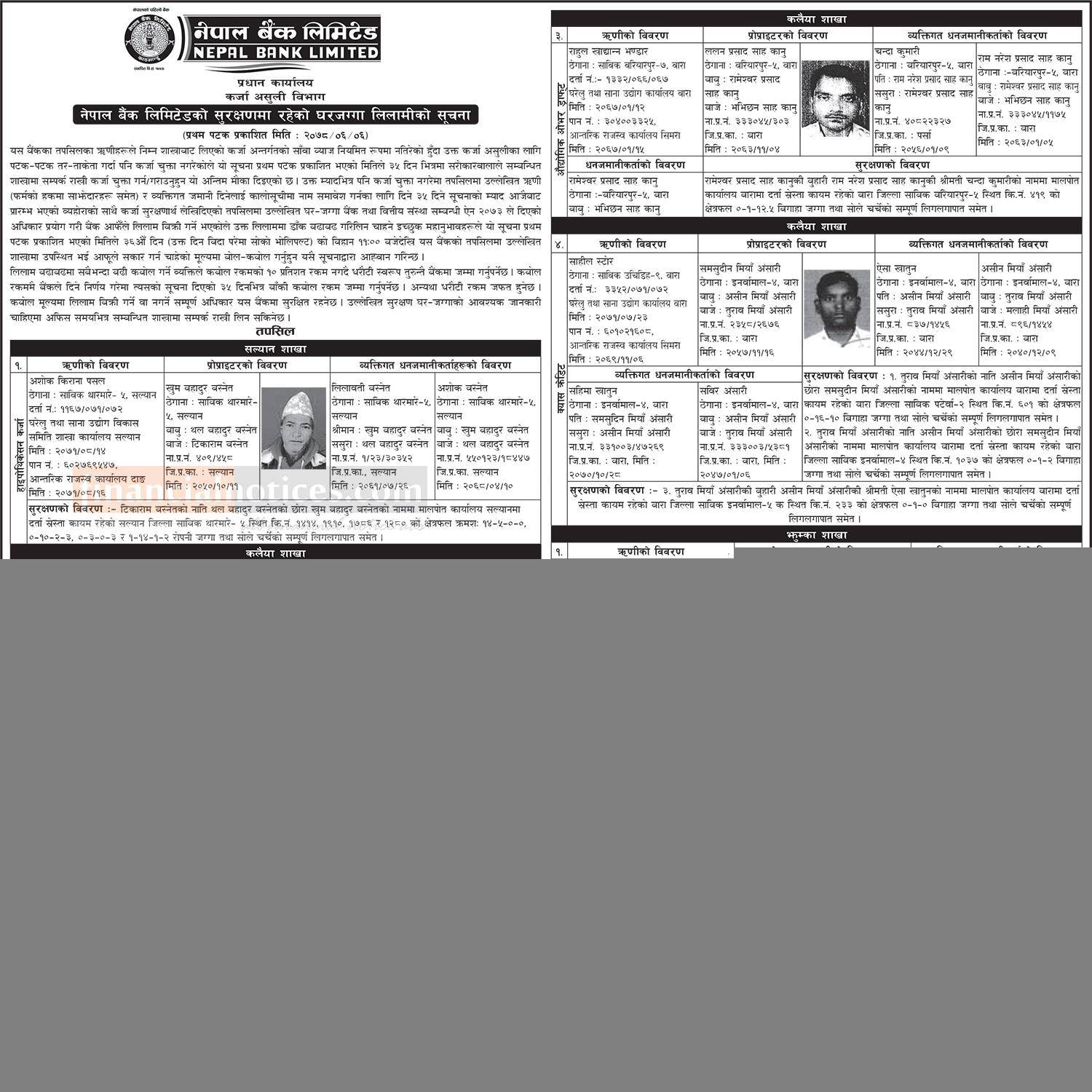 नेपला बैंकको सुरक्षणमा रहेको घरजग्गा लिलामीको सूचना