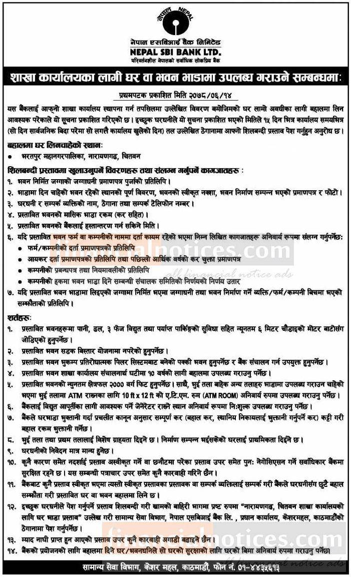 शाखा कार्यालयको लागी घर भाडामा उपलब्ध गराउने बारे सूचना