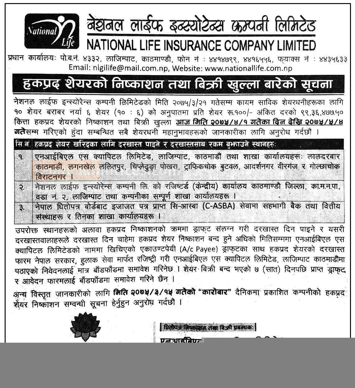 हकप्रद शेयर निष्काशन तथा बिक्री खुल्ला सम्बन्धी सुचना !!!