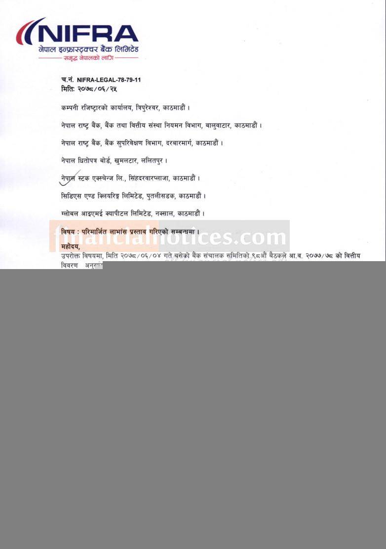 निफ्राको लाभांश संशोधन पछि ८ प्रतिशत बोनस बाँड्ने सम्बन्धी सूचना