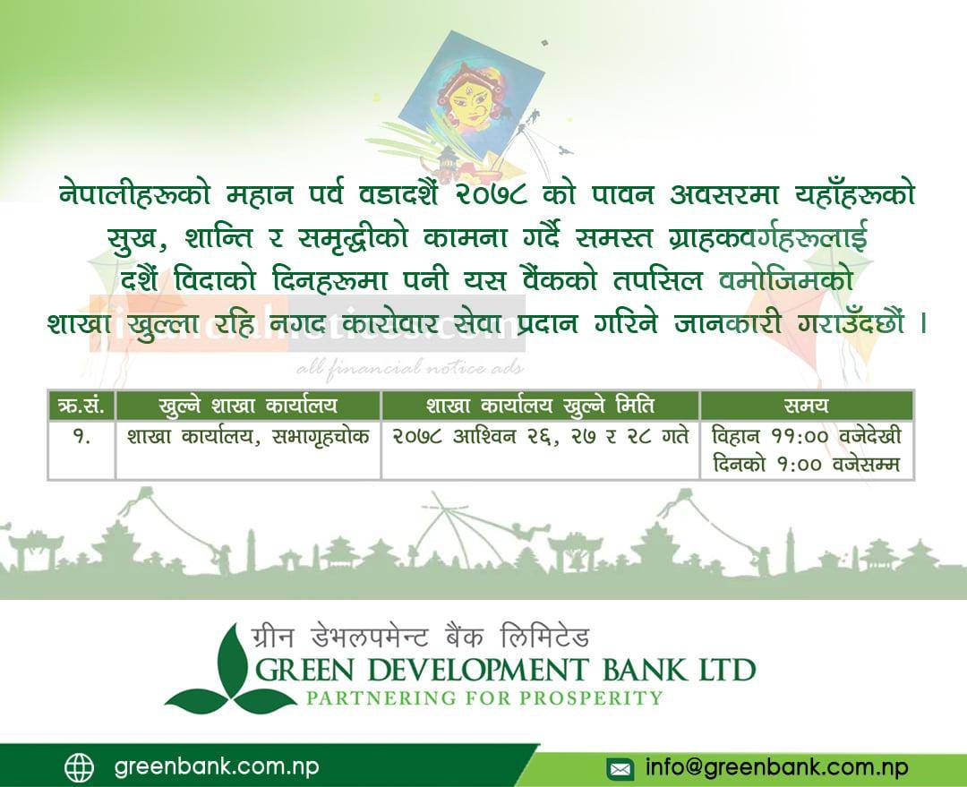 दशैं काउन्टर सेवा सम्बन्धी सूचना!