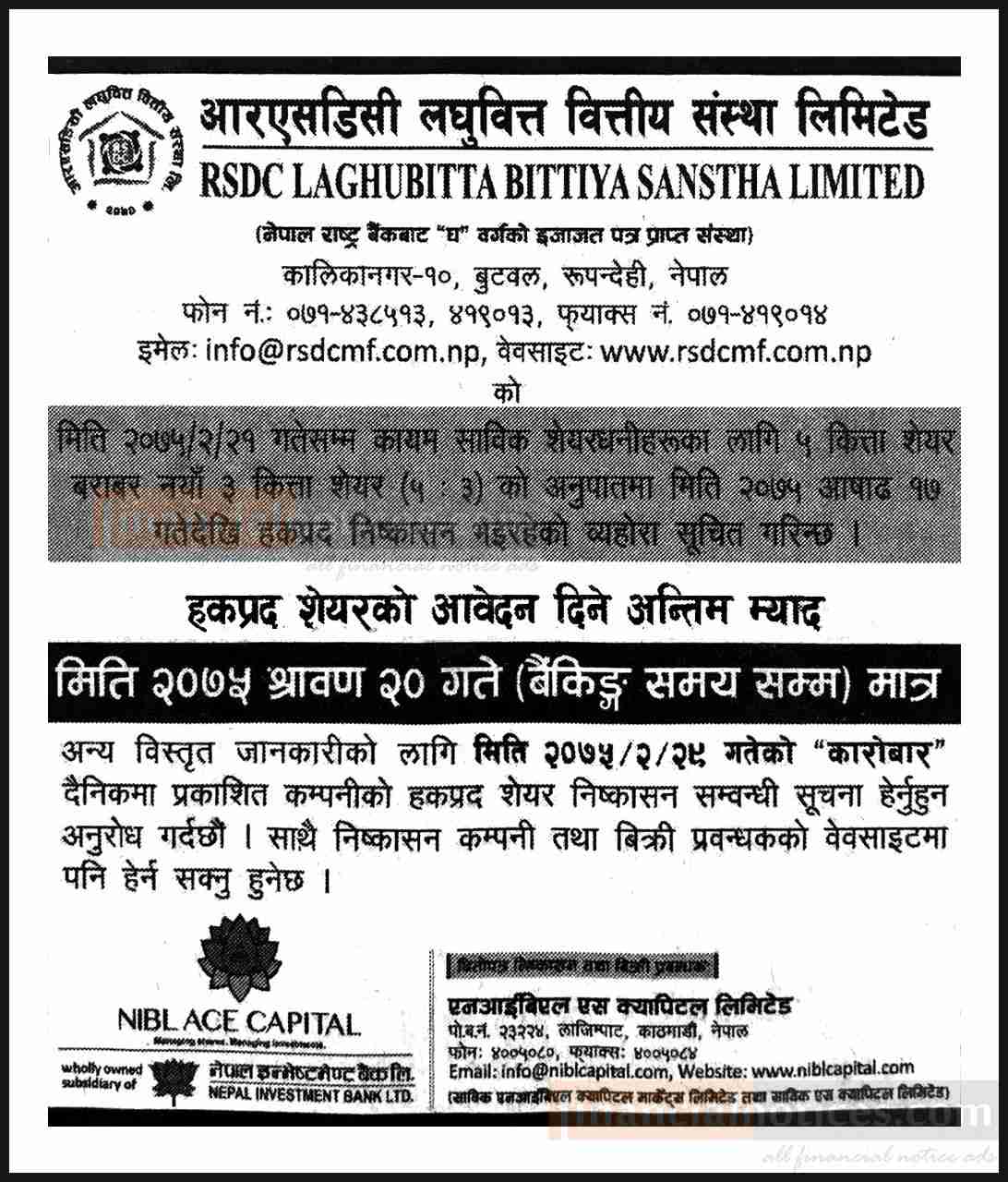 हकप्रद शेयर आवेदन दिने अन्तिम म्याद !!!