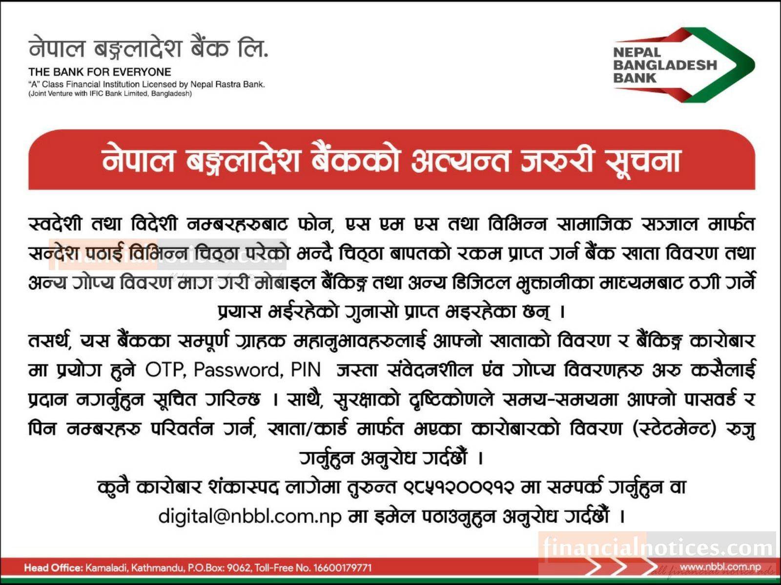 नेपाल बङ्गलादेश बैंकको अत्यन्त जरुरी सूचना