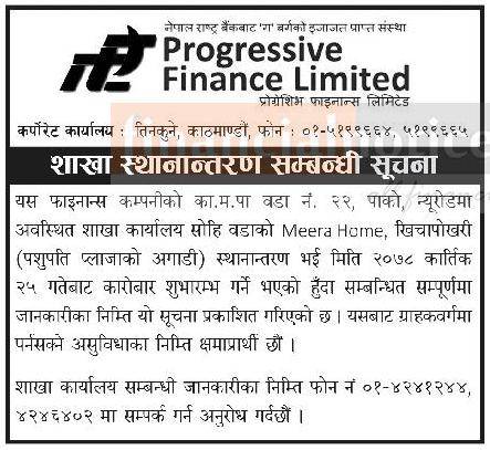 शाखा स्थानान्तरण सम्बन्धी सूचना