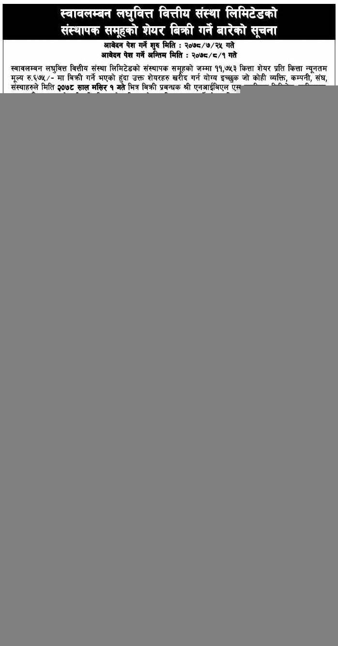 स्वावलम्बन लघुवित्तको संस्थापक समूहको ११,७५३ कित्ता शेयर बिक्री गर्नेबारे सूचना