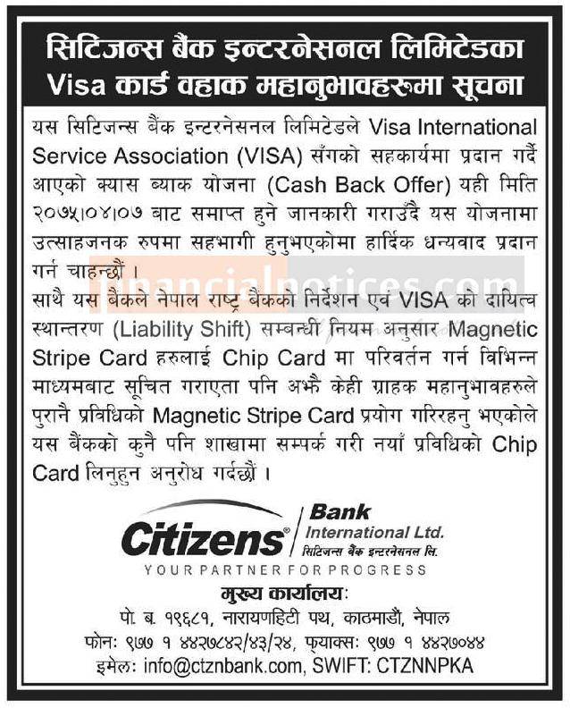 Published by Citizens Bank Int'l Kantipur Newspaper on 2075-4-07